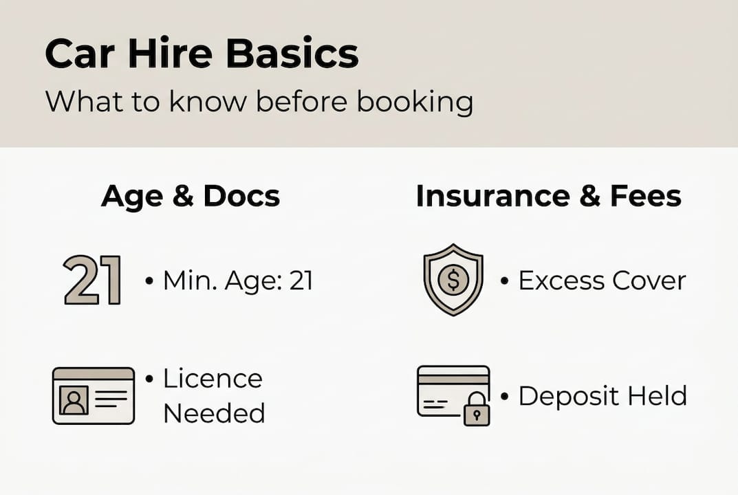 The most common reason people hit problems at the rental counter isn't the price. It's missing paperwork. Showing up without the right documents, or with the wrong type of payment card, can cost you the booking entirely. Getting this right before you leave home takes ten minutes and saves real stress.